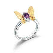 European Amethyst Gemstone Butterfly Adjustable Ring
